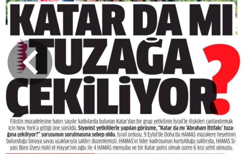 Görüşmeyi “Katar’da mı tuzağa çekiliyor?” başlığıyla manşetten gören Milli Gazete, “Filistin mücadelesine hatırı sayılır katkılarda bulunan Katar’dan bir grup yetkilinin İsrail’le ilişkileri canlandırmak İçin New York’a gittiği öne sürüldü. Siyonist yetkililerle yapılan görüşme, “Katar da mi ‘Abraham İttifakı’ tuzağına çekiliyor?” sorusunun sorulmasına sebep oldu” satırları yer aldı.