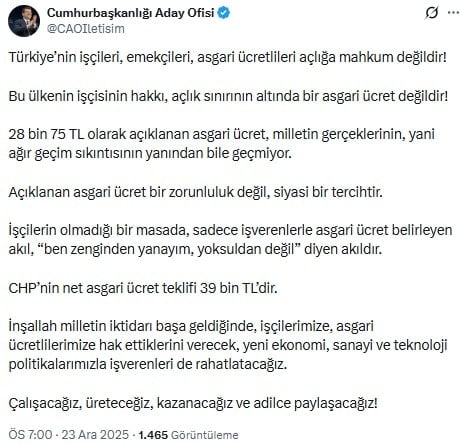28 bin 75 TL olarak açıklanan asgari ücret, milletin gerçeklerinin, yani ağır geçim sıkıntısının yanından bile geçmiyor.