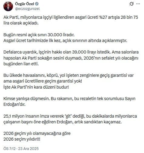 ÖZGÜR ÖZEL: 2026 SEFALET YILI