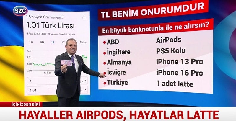 Siyasetin, ekonominin gündemi SÖZCÜ TV’de Ekrem Açıkel ile İçinizden Biri programında konuşuluyor. Savaştaki Ukrayna’nın Grivnası TL’yi geçti. Ekrem Açıkel milli onurumuz Türk Lirasının düştüğü durumu canlı yayında anlattı
