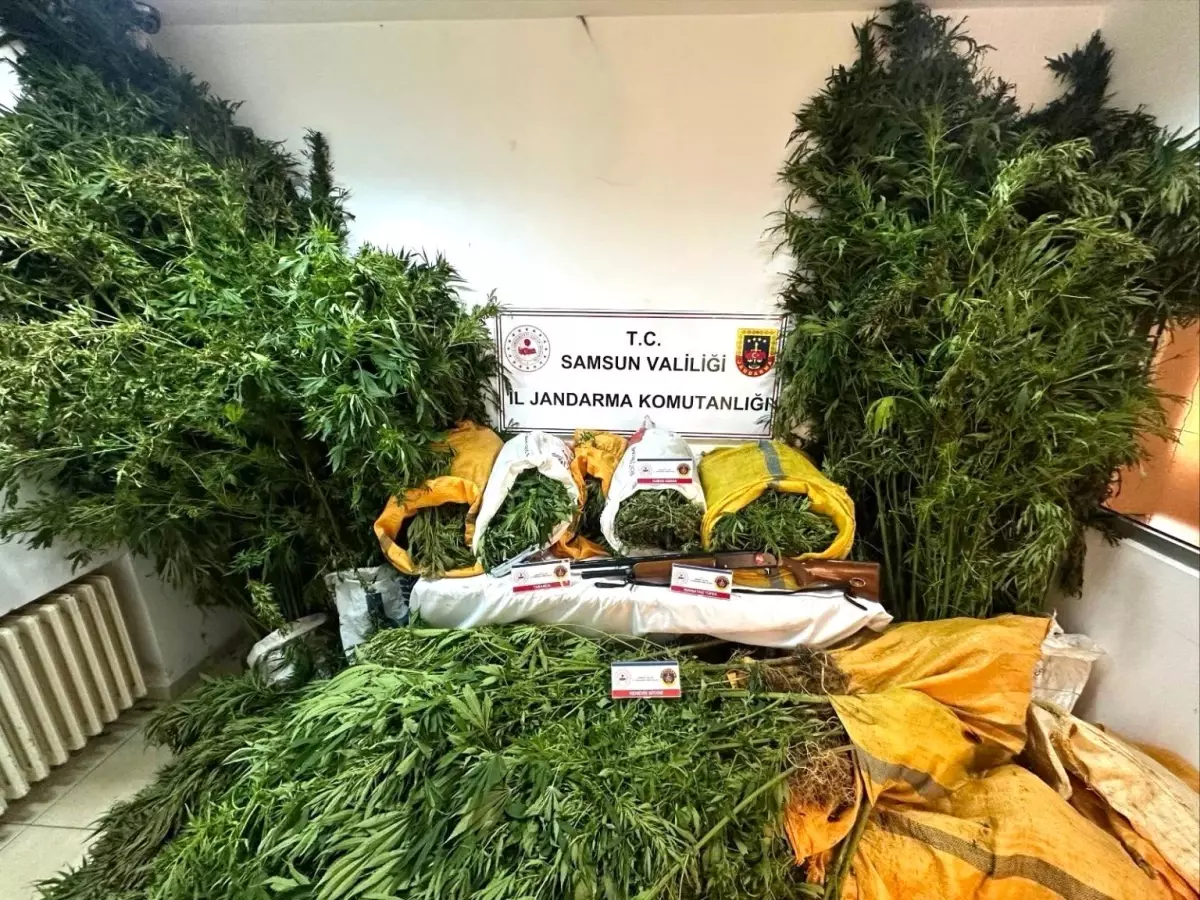 Samsun’da jandarma ekipleri tarafından düzenlenen uyuşturucu operasyonunda 57 kilo 955 gram kubar esrar ile birlikte tarlada ekili 495 kök kenevir bitkisi ele geçirdi.